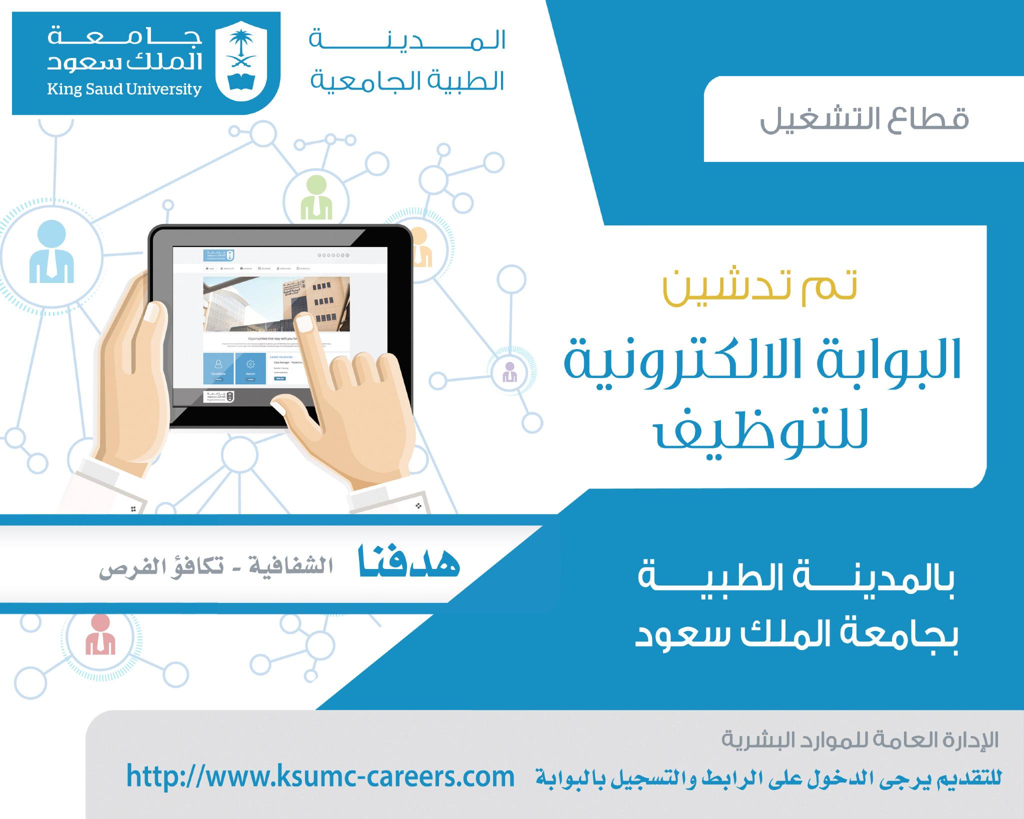 الـ مـديـ نـ ة الـ طبـ يـ ة Pa Twitter المدينة الطبية بجامعة الملك سعود تطلق المرحلة الأولى للبوابة الإلكترونية للتوظيف Http T Co Qw8xqxt1ps Http T Co Rzpopyhlbj